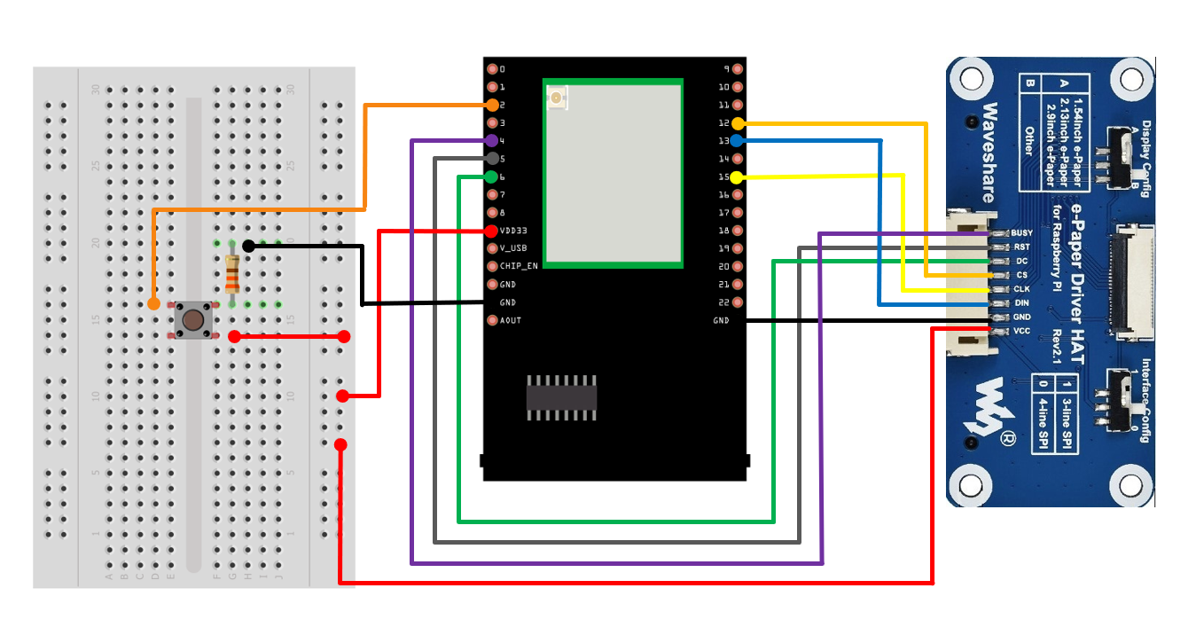 In this example, we will be connecting Ameba Pro2 board to Waveshare 7.5-inch e-Paper module to be used as an e-Book. The 7.5" active area contains 800 x 480 pixels and has 1-bit white/black full display capabilities. An integrated circuit contains gate buffer, source buffer, interface, timing control logic, oscillator, etc. are supplied with each panel. You may refer to [7.5inch-e-paper-specification] https://www.waveshare.com/w/upload/6/60/7.5inch_e-Paper_V2_Specification.pdf for more information about this e-Paper module.