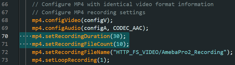 You may also change the mp4 recording duration (in seconds) and filecount. Please do not change the filename ("folder"/"file").