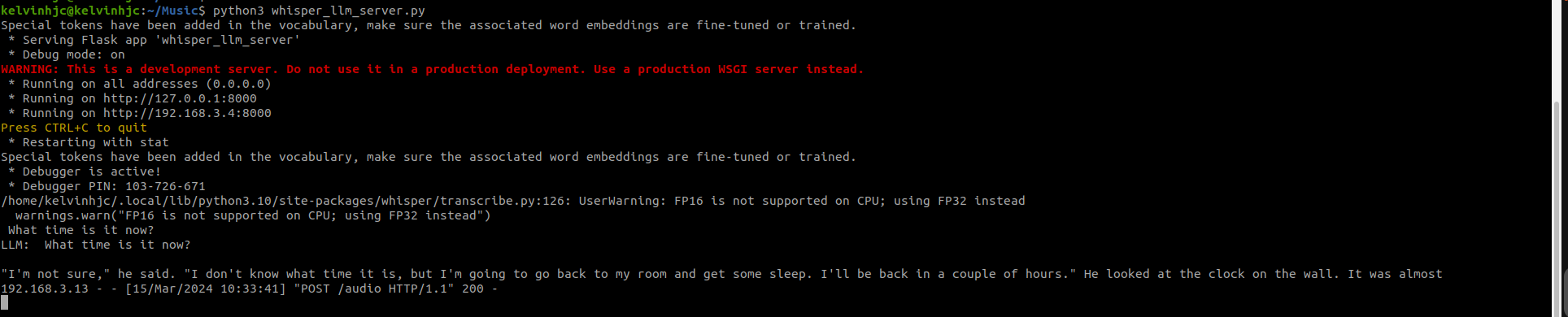 Set up the http server by locating the python script called "whisper_llm_server.py" in src folder. Go to command prompt and go to the src folder and execute this command: python3 whisper_llm_server.py. Follow the readme in the python script.