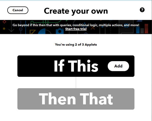 IFTTT, known as If This Then That, is a website and mobile app and free web-based service to create the applets, or the chains of simple conditional statements. The applet is triggered by changes that occur within other web services such as Gmail, Facebook, Telegram, Instagram, Pinterest etc.