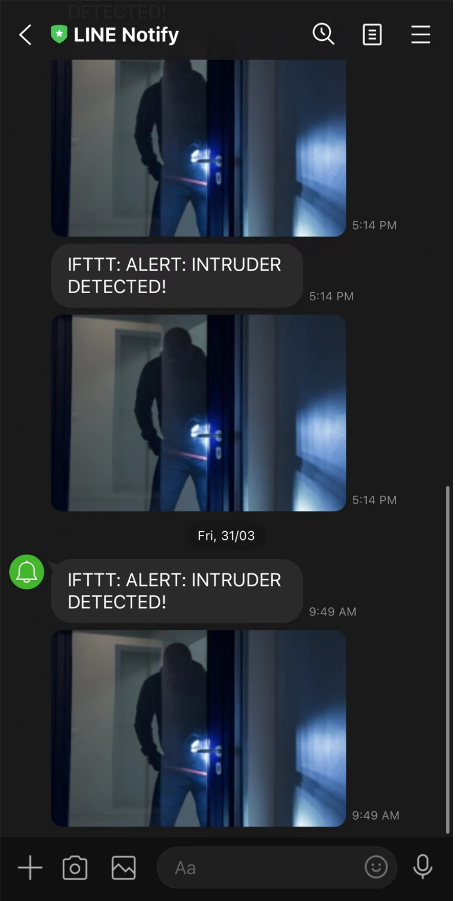 On the Arduino IDE, compile the code and upload the code onto Ameba and press the reset button. After the event has been successfully fired, you will receive a message from "LINE Notify" on your Mobile devices or PC.