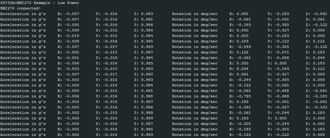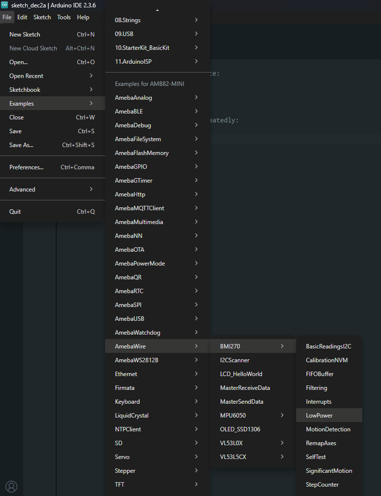 Open the example in "File" -> "Examples" -> "AmebaWire" -> "BMI270" -> "LowPower".