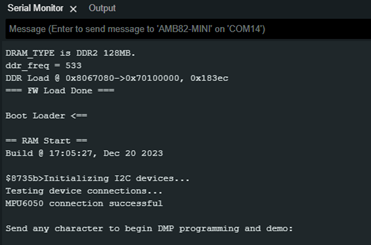 Compile and run the example. In the Serial Monitor, you should be able to see the prompt to begin DMP programming. Key in any character on the serial monitor and press 'Enter'.