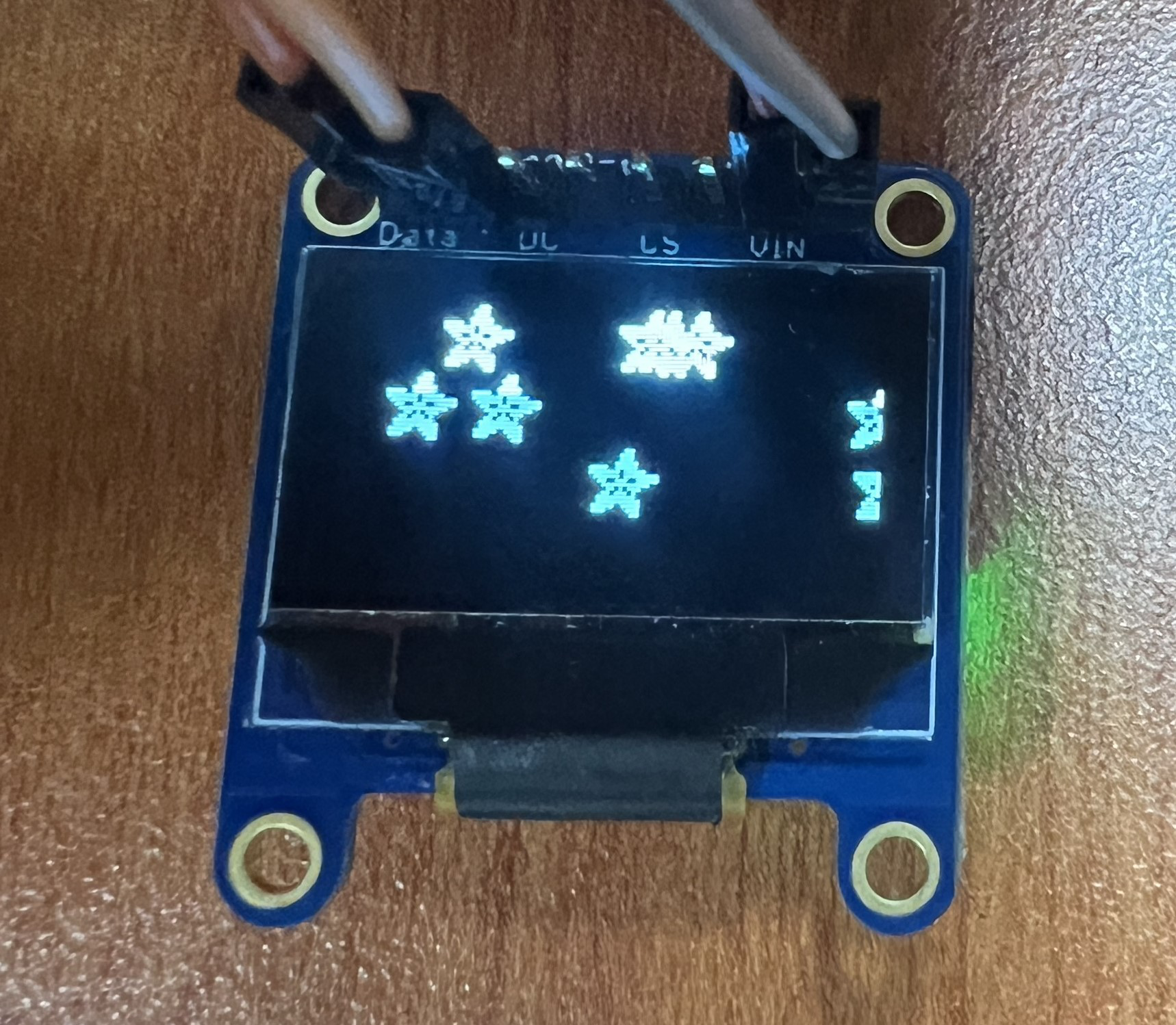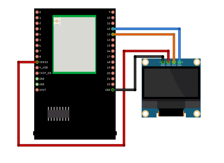 Connect the 0.96-inch OLED display to I2C_SDA and I2C_SCL of the board.