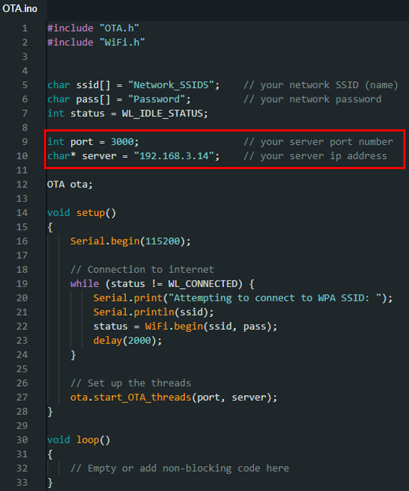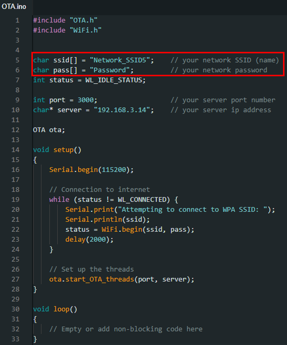 This set up must be done at least once to allow the OTA thread API to be called for the first time. For subsequent firmware updates, as long as OTA.h is included and start_ota_threads API is called in the setup function, you do not need to re-upload the code manually.