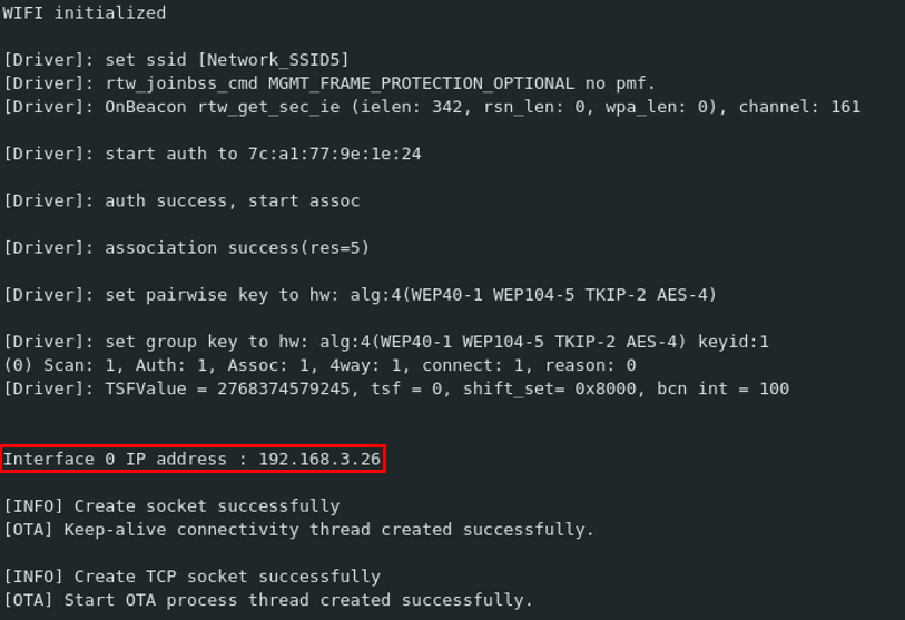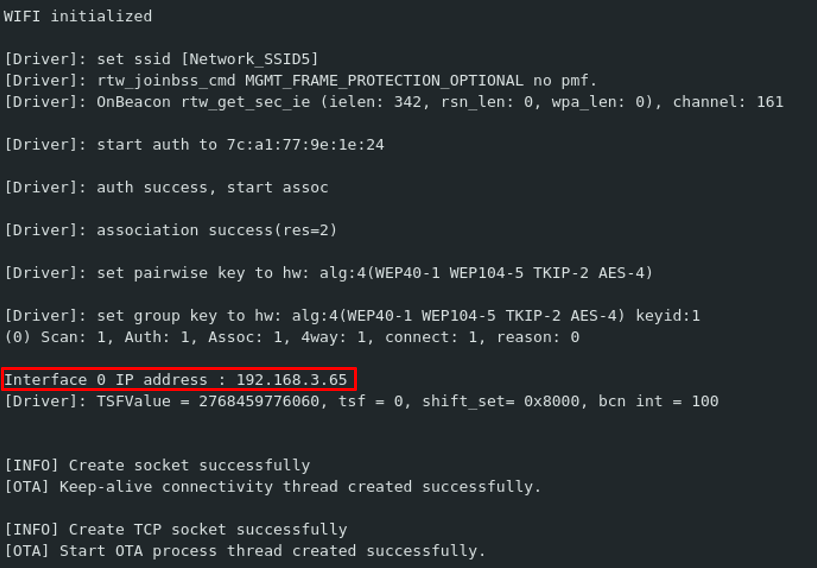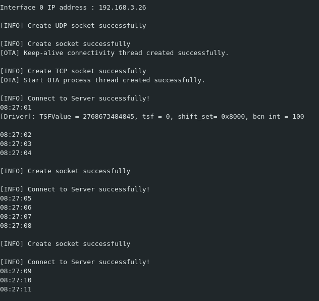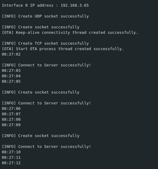 Thread 1: For the purpose of connectivity check, the OTA state is sent to the server from AMB82 Mini board. Once received, the OTA state of the board will be shown on the Web UI.