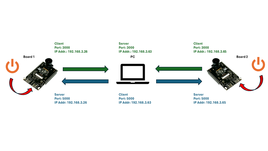 For the steps below, you may disconnect AMB82 Mini from your PC and power up the board with any stable 5V DC power source. The overall connection map of this example guide is shown in the figure below.