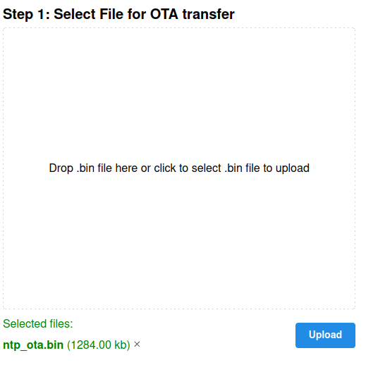 Upload ota.bin (or renamed ota.bin) to the webpage UI for OTA transfer to AMB82, as shown in the figure below: