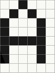 In our API, each character is 5x7 but each character is printed to size 6x8 (its right side and below are left blank), so as to separate from next character. For example, the character "A":