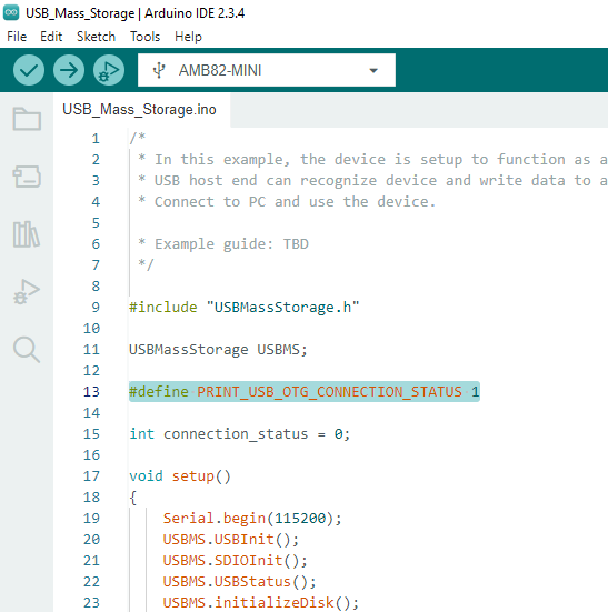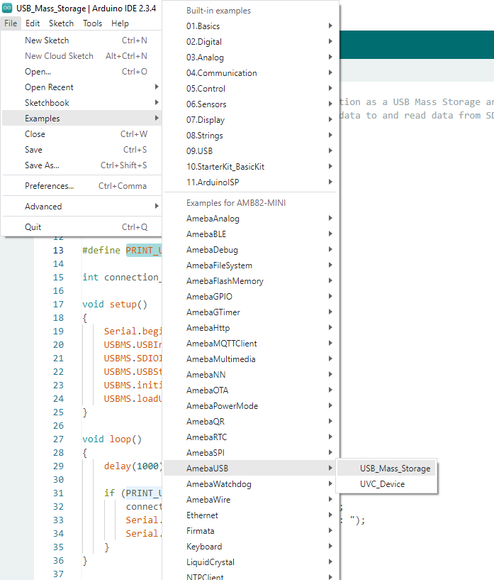 Open the example in "File" -> "Examples" -> "AmebaUSB" -> "USB_Mass_Storage". Compile and upload to Ameba, then press the reset button.
