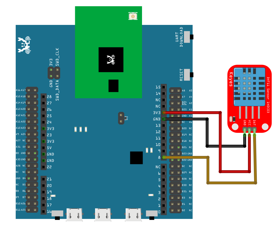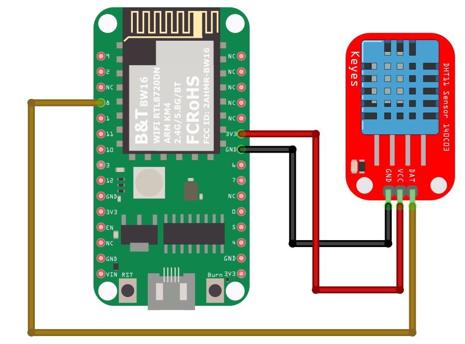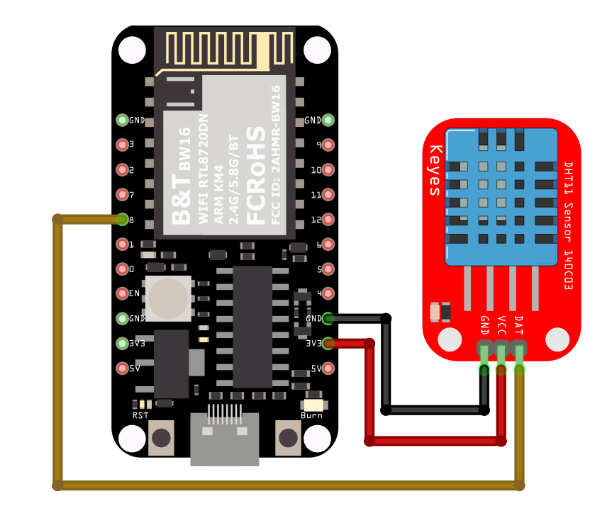 Connect the DHT sensor to the Ameba board following the diagram.