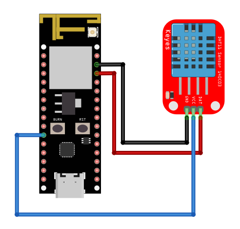 Take note that if you are using a DHT sensor that is not mounted on a PCB, you will have to add in a 10K Ohm pull up resistor.