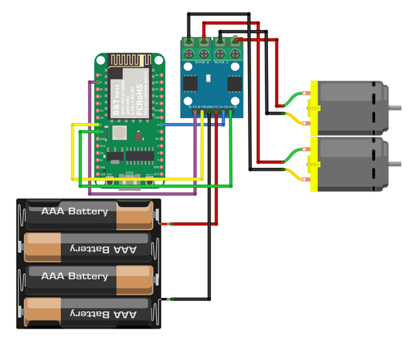 1A pins are connected to GPIO pins, used for controlling the motor directions.