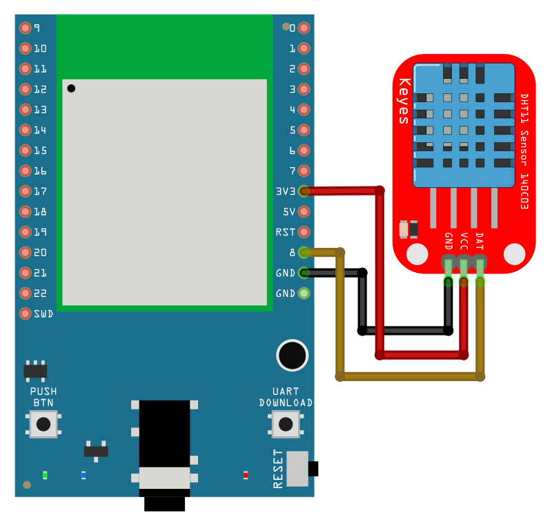 Take note that if you are using a DHT sensor that is not mounted on a PCB, you will have to add in a 10K Ohm pull up resistor. You may refer to the wiring diagrams.