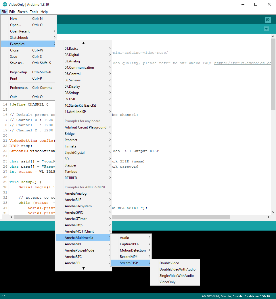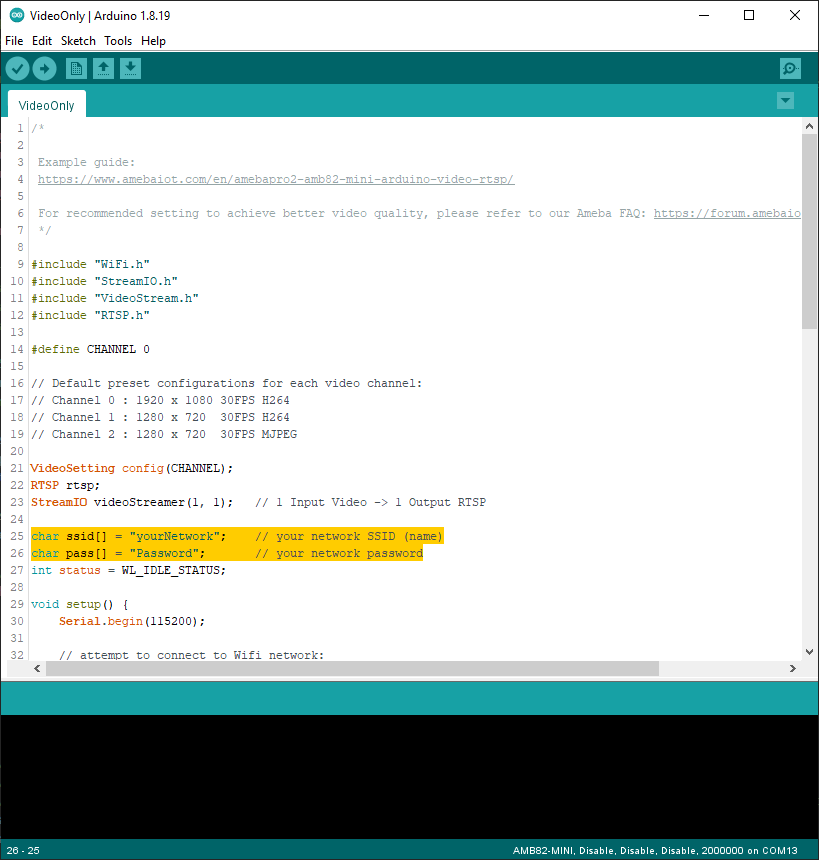 In this example, we will use the Ameba Pro2 board to stream video and audio data from the on-board camera sensor (JX-F37P) and audio codec to a computer via RTSP (Real Time Streaming Protocol).