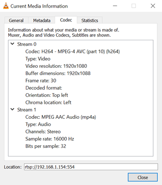 Make sure your PC is connected to the same network as the Ameba Pro2 board for streaming. Since RTSP is used as the streaming protocol, key in rtsp://{IPaddress}:{port} as the Network URL in VLC media player, replacing {IPaddress} with the IP address of your Ameba board, and {port} with the RTSP port shown in Serial Monitor e.g., rtsp://192.168.1.154:554. The default RTSP port number is 554. In the case of two simultaneous RTSP streams, the second port number defaults to 555.