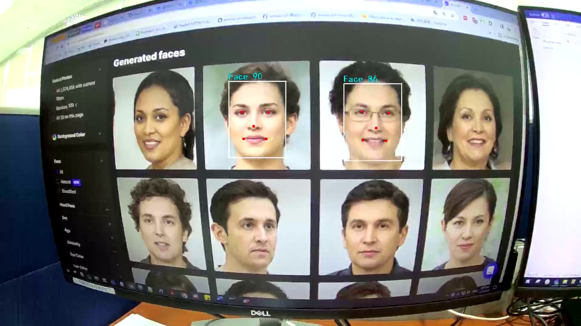 In this example, we will be using Ameba Pro2 development board to detect faces. Faces are detected based on 5 face feature points (left eye, right eye, nose, left side of mouth and right side of mouth).