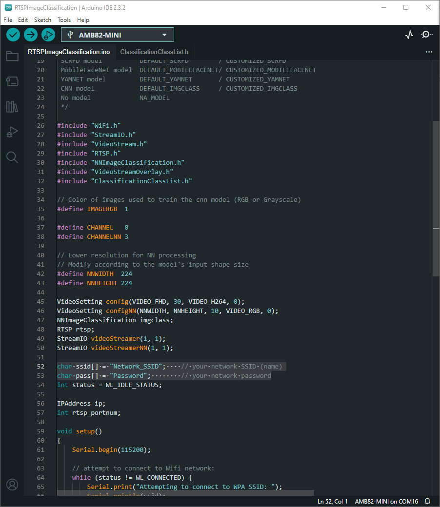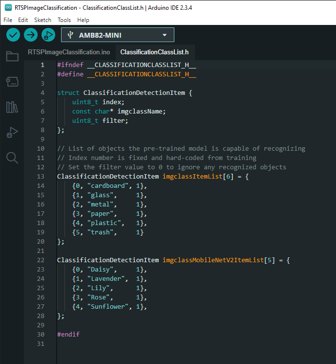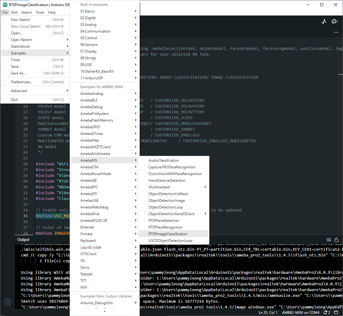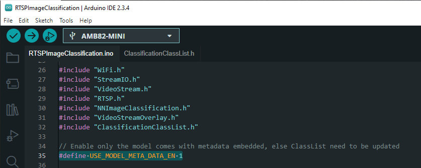 Open image classification example in File -> Examples -> AmebaNN -> RTSPImageClassification