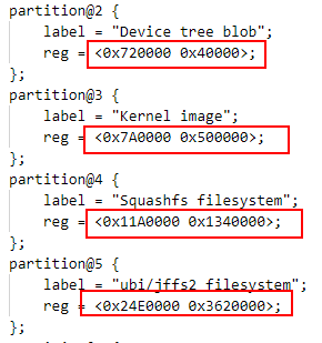 用户可以根据 DTS 中每个布局的偏移量和大小 章节中的偏移量和大小,配置分区 reg 的值。