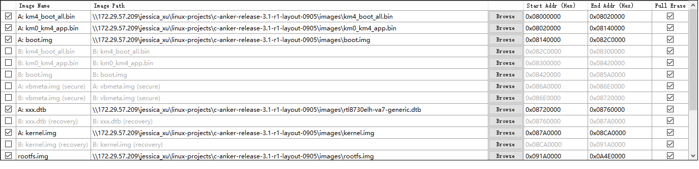 其中,A 表示 dtb 和内核的 A 部分,B 表示 dtb 和内核的 B 部分。十六进制值是基于 FLASH 基地址的偏移量。