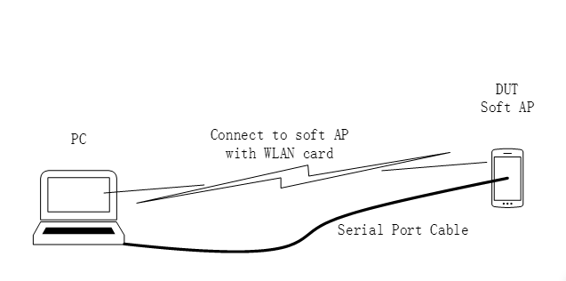 DUT: 用于测试的设备应为 Ameba 智能板。它将通过无线连接到 AP,并通过串口线连接到电脑。