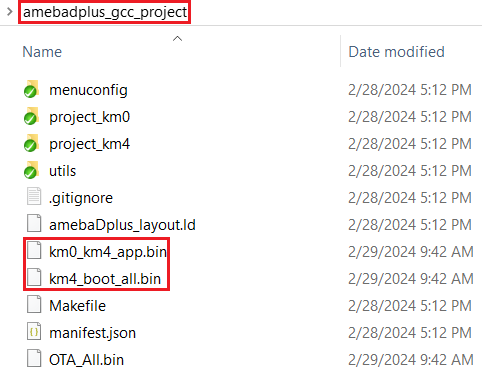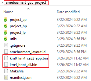 /amebadplus_gcc_project路径下,用户也可以在如下文件夹看到固件:/amebadplus_gcc_project/project_km0/asdk/image/amebadplus_gcc_project/project_km4/asdk/image
