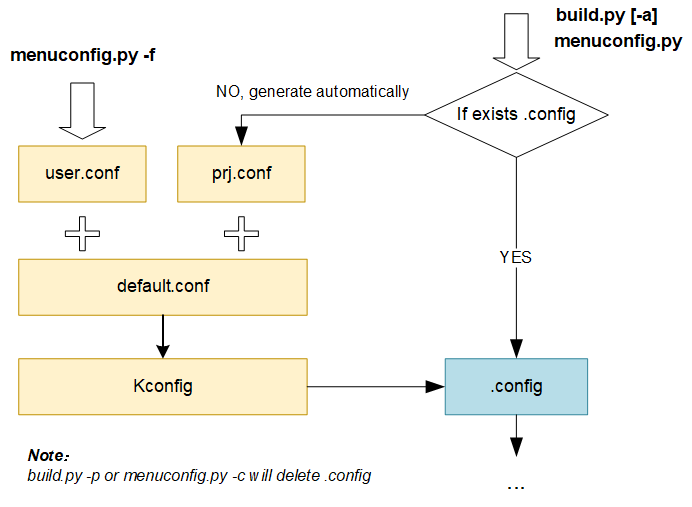 conf 文件通过将用户需要设置的配置项写入其中,代替可视化界面的 menuconfig 方式。 和 menuconfig 交互式配置的方式类似,这种方式本质上也是选中/取消选中一些 Kconfig 文件中定义的项,只是用参数输入的方式代替了交互的的输入。