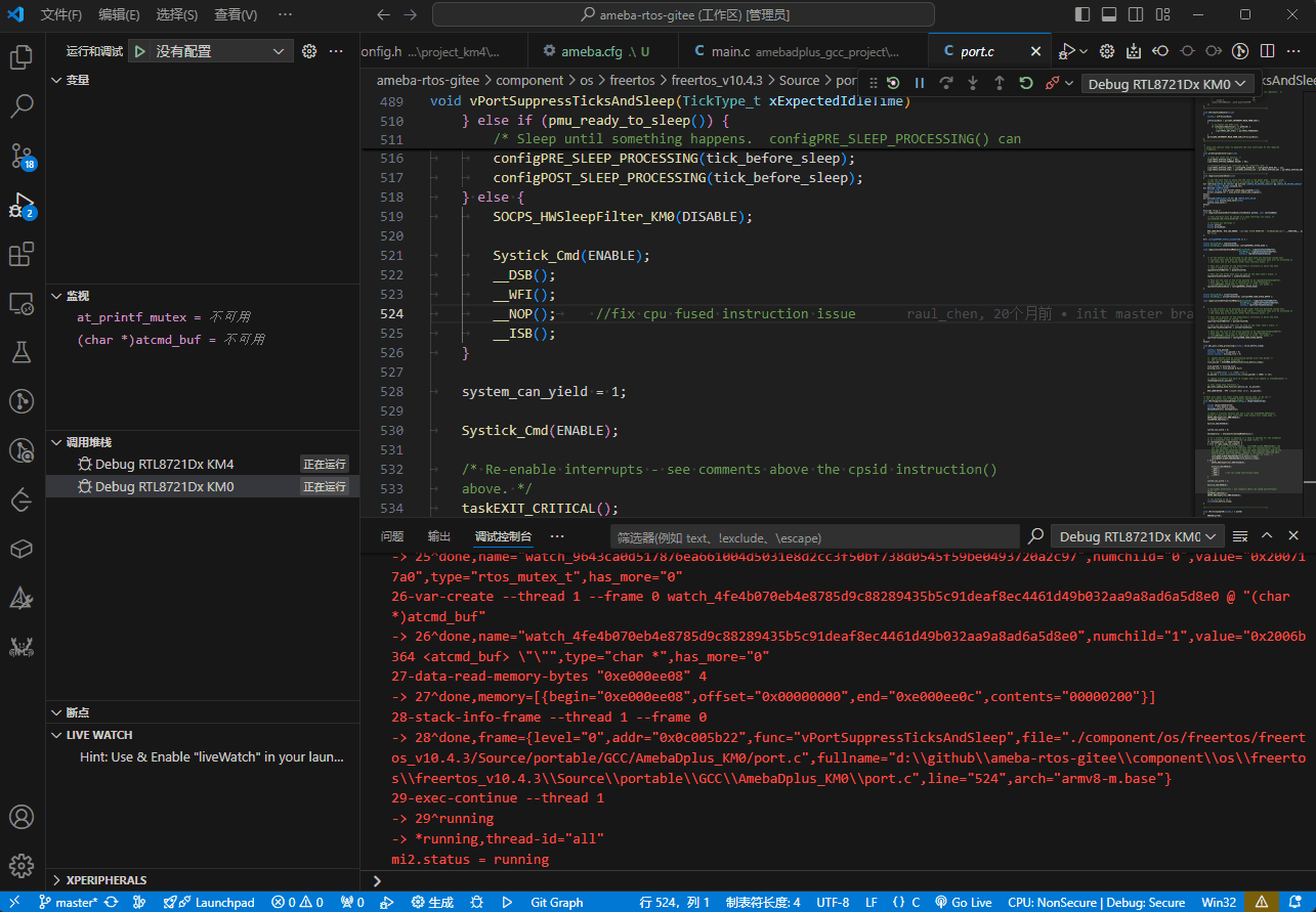 启动调试时, OpenOCD( GDB 服务器)由 AmebaRemoteService 在本地 Windows PC 上启动。你可以在 AmebaRemoteService 窗口查看 OpenOCD 输出日志与状态。