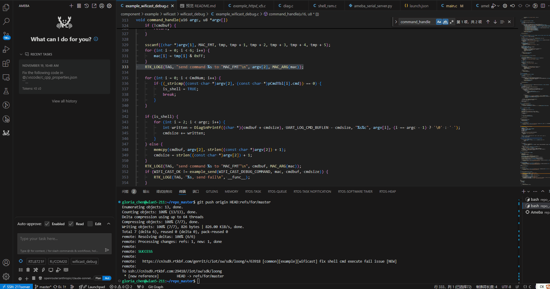 重新启动 VS Code 并打开 Ameba SDK 项目