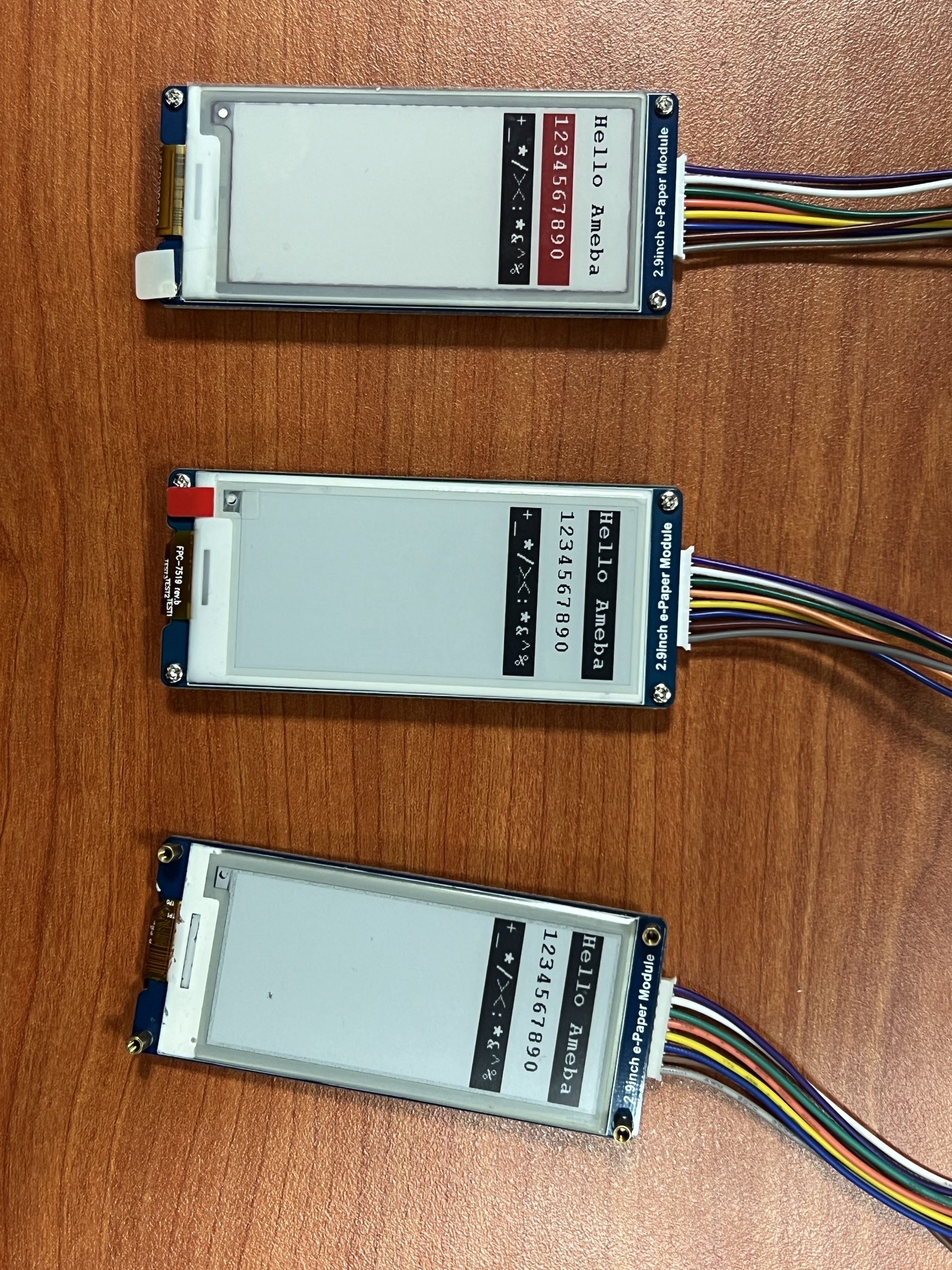 In this example, Ameba Pro2 board will be used to connect to a Waveshare e-Paper module (2.9inch/ 4.2inch/ 7.5inch) to display texts. The display uses the flexible substrate as base plate, with an interface and a reference system design. You may refer to the official datasheet to know more information about these modules.