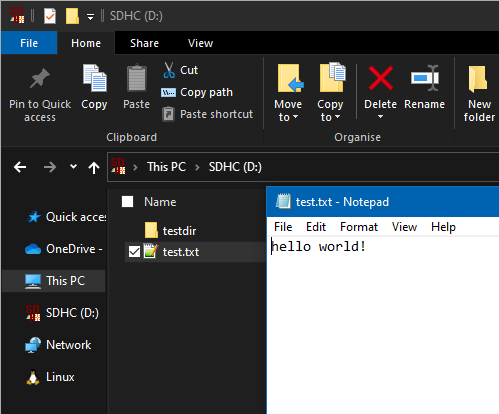 Using a card reader, connect the SD card to a computer, open the folder and the file to verify that the contents are as expected.