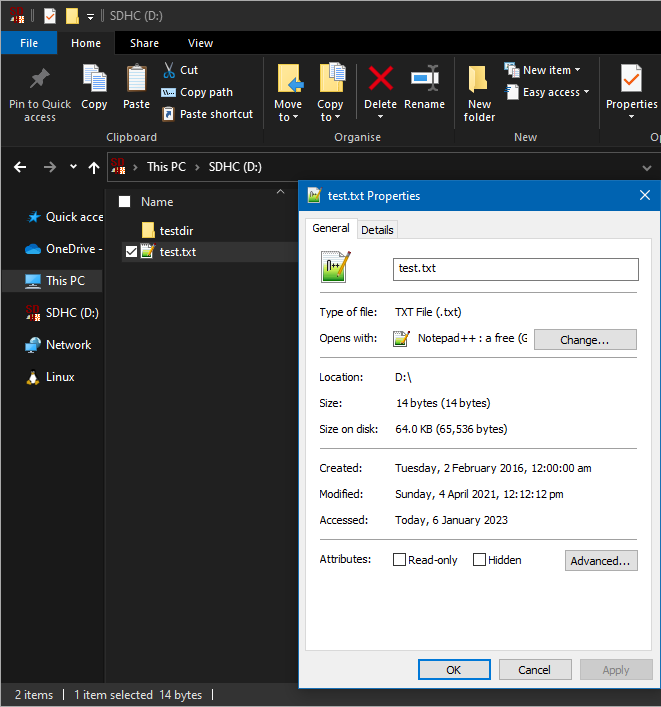 Using a card reader, connect the SD card to a computer and verify that the last modified time of the file are as expected.