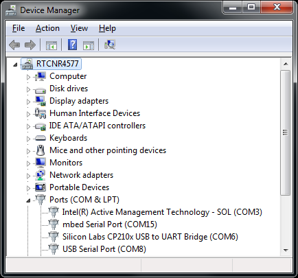 Next, we will observe the data receive by Ameba in the Serial Monitor. (Note: If you do not know which port the Ameba development board is connected to, please find it in the Device Manager of Windows first. Ameba is connected as “mbed Serial Port”. For example, if you find mbed Serial Port (COM15) means Ameba is connected to port COM15.)