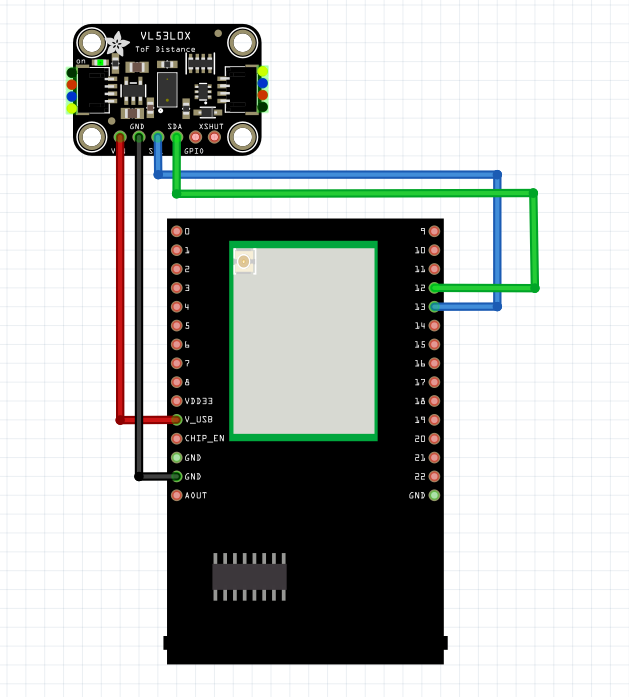 Connect the VL53L0X IR sensor to I2C_SDA and I2C_SCL of the board as shown in the diagram below.
