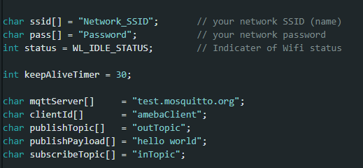Open example at “File” -> “Examples” -> “AmebaMQTTClient” -> “MQTT_TLS”
