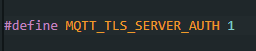 Replace the character strings “certificateBuff” and “privateKeyBuff” with the signed certificate and OpenSSL private key, ensuring that they are formatted the same way as the shown in the example code. Set “MQTT_TLS_SERVER_AUTH” to be “1”.