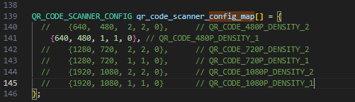To optimise the performance for your application, one can modify the qr_code_scanner_config_map in qrcode_drv.c as shown in the picture below. For now, there is no API exposed on the Arduino level, but this can be done in future if there is a huge demand for it.