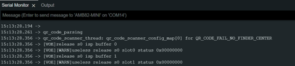 To test this example, compile and run the example. Place a QR code in from the camera of AMB82 MINI. If there is no QR code detected, you will be able to see this in Serial Monitor.