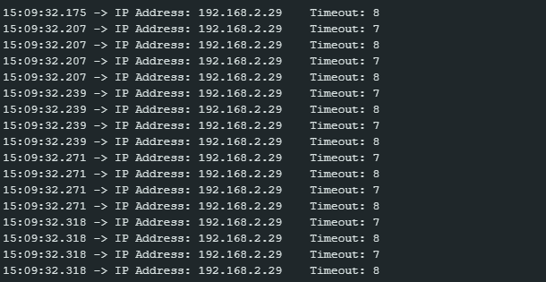 The computer will begin to send packets continuously to Ameba. The timeout value is set to 1000ms initially. For each packet received successfully, Ameba decreases the timeout value. The next packet must be received within the timeout period, otherwise Ameba registers a failed packet and increases the timeout value. Open the serial monitor and observe the timeout value converge to a minimum value.
