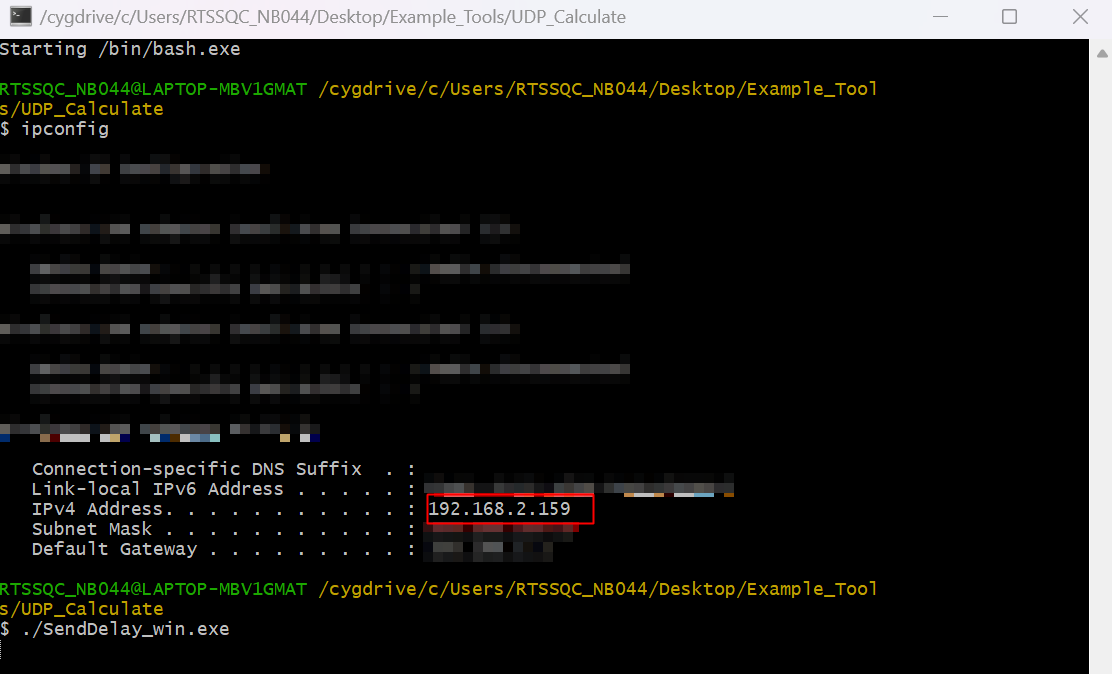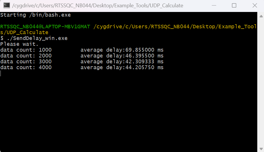 Run command “./SendDelay_win.exe”. The computer begins to listen for packets from Ameba.