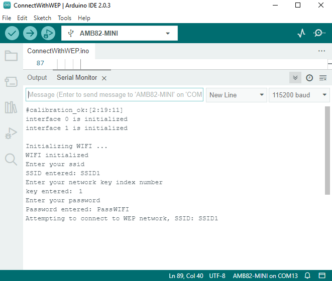 If you prefer to enter your SSID & password in the Serial monitor while the program is running, uncomment #define MANUAL_INPUT at the top of the file.