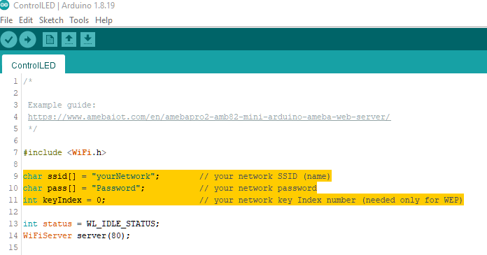 Then open “File” -> “Examples” -> “WiFi” -> “SimpleHttpWeb” -> “ControlLED”