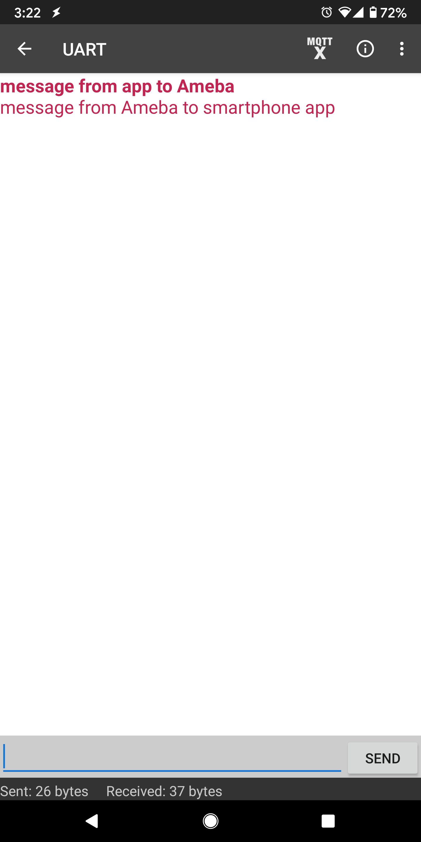 In the UART terminal section of the app, enter a message and click send. You should see the message appear in the Arduino serial monitor.
