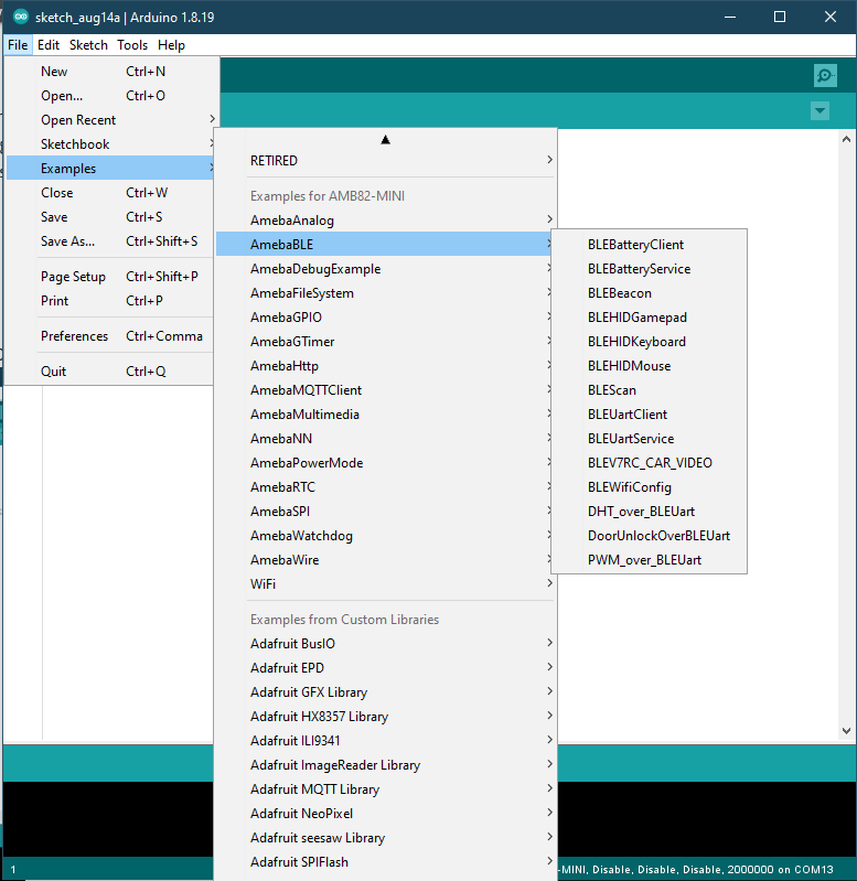 Open the example, Files -> Examples -> AmebaBLE -> BLEV7RC_CAR_VIDEO