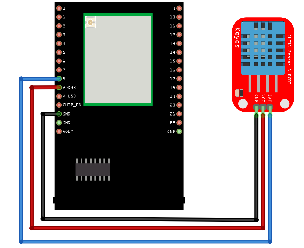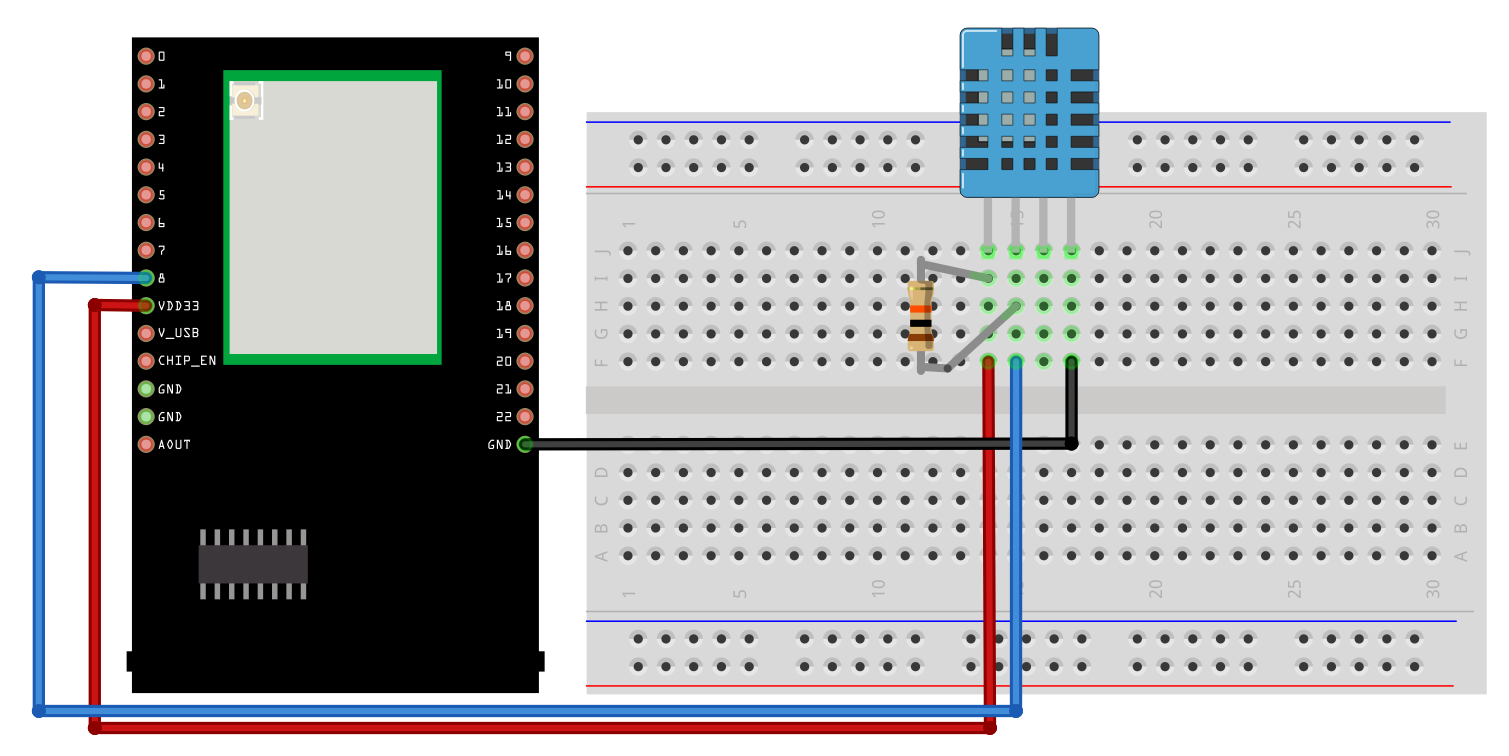 Take note that if you are using a DHT sensor that is not mounted on a PCB, you will have to add in a 10K Ohm pull up resistor. You may refer to the wiring diagrams.