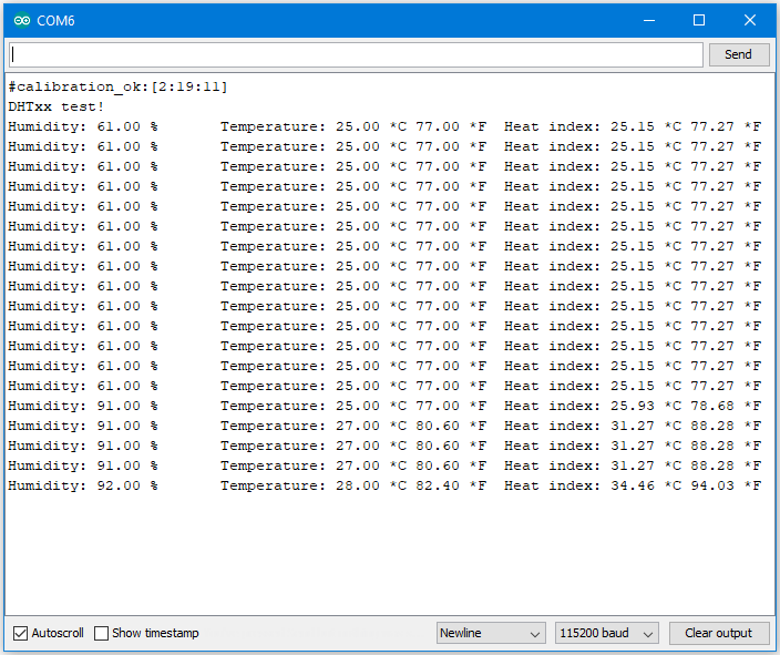Open the sample code in Files -> Examples -> AmebaGPIO -> DHT_Tester Compile and upload to Ameba, then press the reset button. The result would be shown on the Serial Monitor.