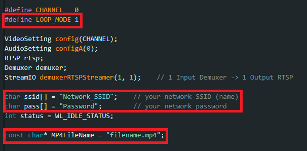 Finally, specify the name of the MP4 file you want to stream via RTSP. It is recommended to use an MP4 file recorded with the AmebaPro2 board.