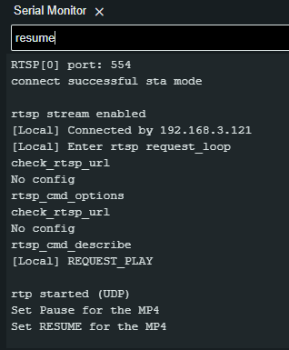 After pressing the Reset button, wait for the Ameba Pro 2 board to connect to the WiFi network. The board’s IP address and network port number for RTSP will be shown in the Serial Monitor.