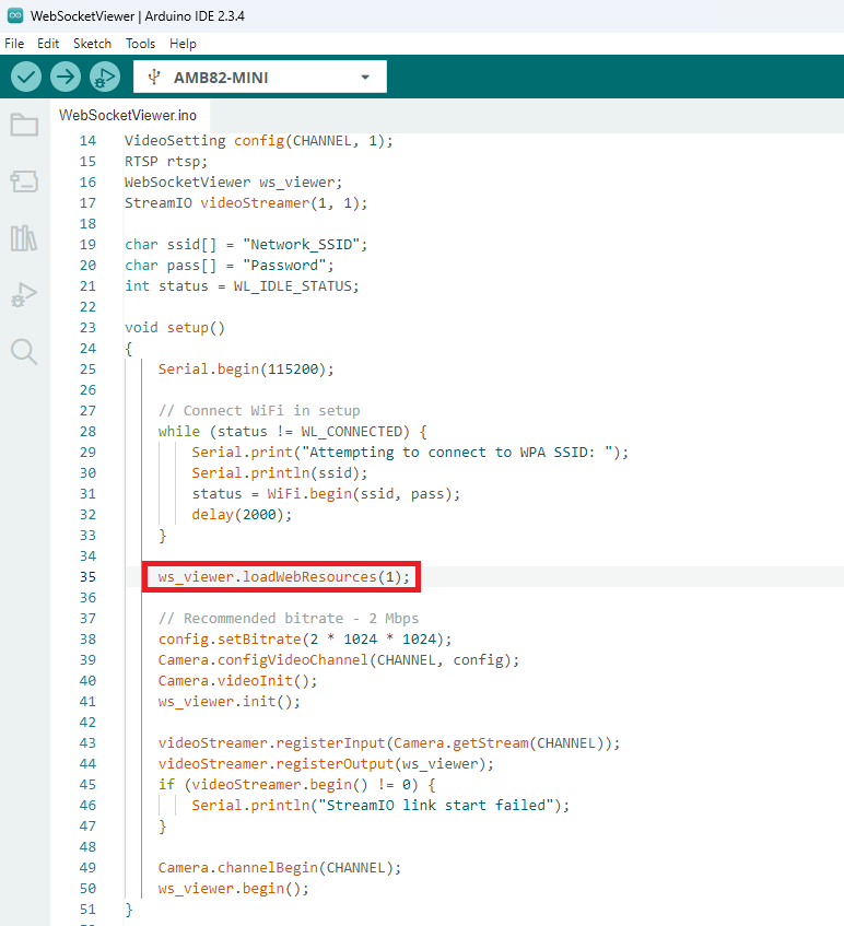 This example demonstrates how the AMB82 Mini acts as a WebSocket server to stream live camera video to a web browser.