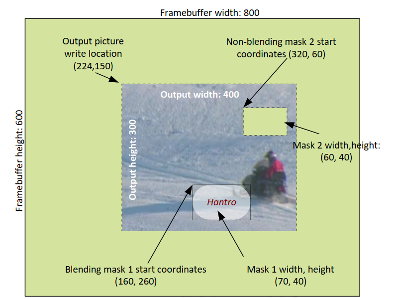 The following figure is an example where mask2 acts as a mask area, partially masking the original image to reveal the background color. Mask1 acts as an alpha blending area, performing alpha blending between the input data and the original image.